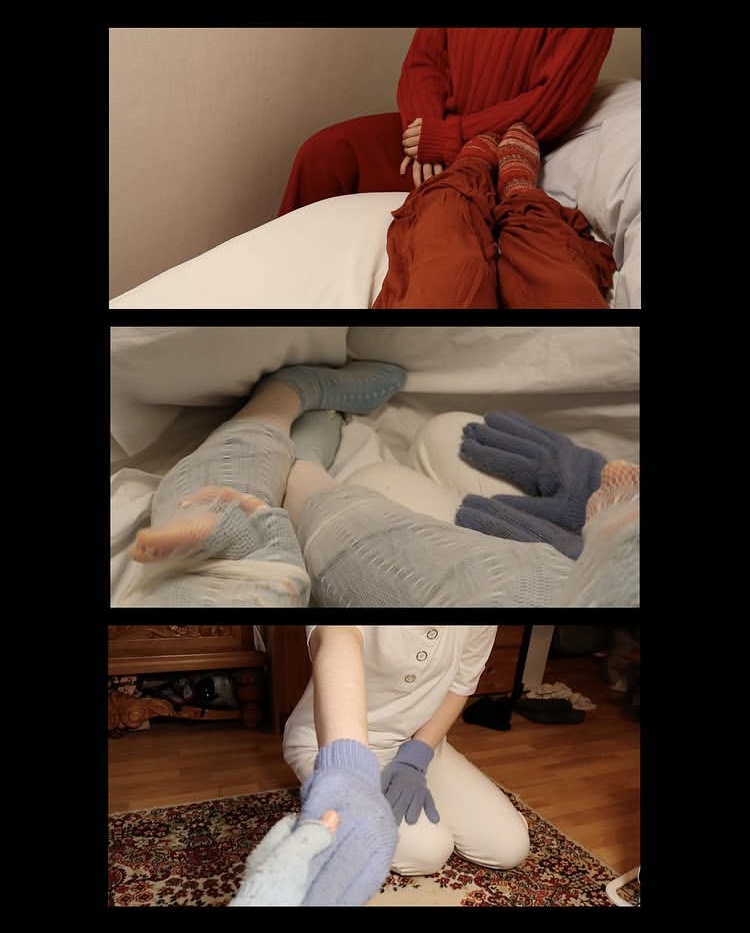 In My Voices, Kyrgyz filmmaker Aidai Amanova reflects on language, identity, and power. The four-minute short is shot from a first-person perspective. It depicts the simple act of changing clothes, sometimes with the help of another person whose face remains hidden beyond the frame. Through this simple metaphor, Amanova conveys the transgressive nature of learning and speaking different languages, as the synopsis aptly describes it: “the vulnerability of self-construction within systems of assimilation.”